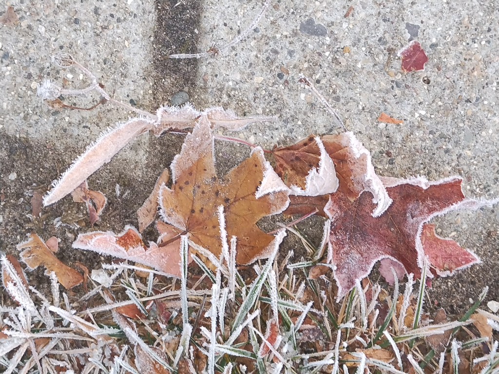 I woke up this morning to frost crystalizing all the dormant or dead grass and leaves. It glittered as the sun rose.